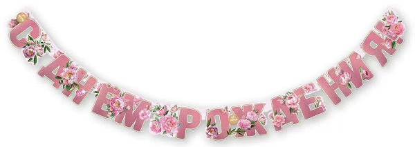Гирлянда, С Днем Рождения, Цветы! 180 см, 1 уп.