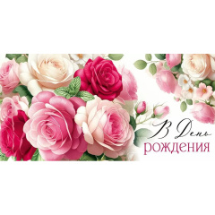Конверт для денег "В День рождения!" Розы пионовидные
