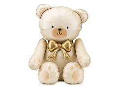 ПД Шар 3D (35"/89 см) Фигура, Сидячий мишка, С бантиком, Кремовый, 1 шт. в уп.